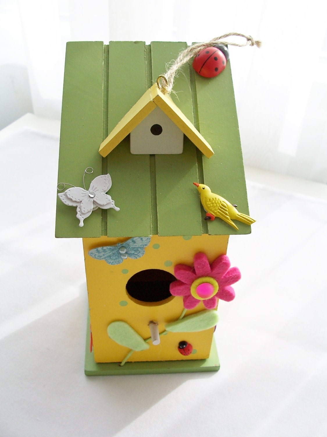 21 decorative birdhouses that will bring all the birds to the yard. The decorative wooden birdhouse bulk ornament beckons birds to stop in for a bite and rest their weary wings for the night. I had a different vision initially but i also attached a wood picket fence and metal bird that i had in my stash with the e6000 glue too.
